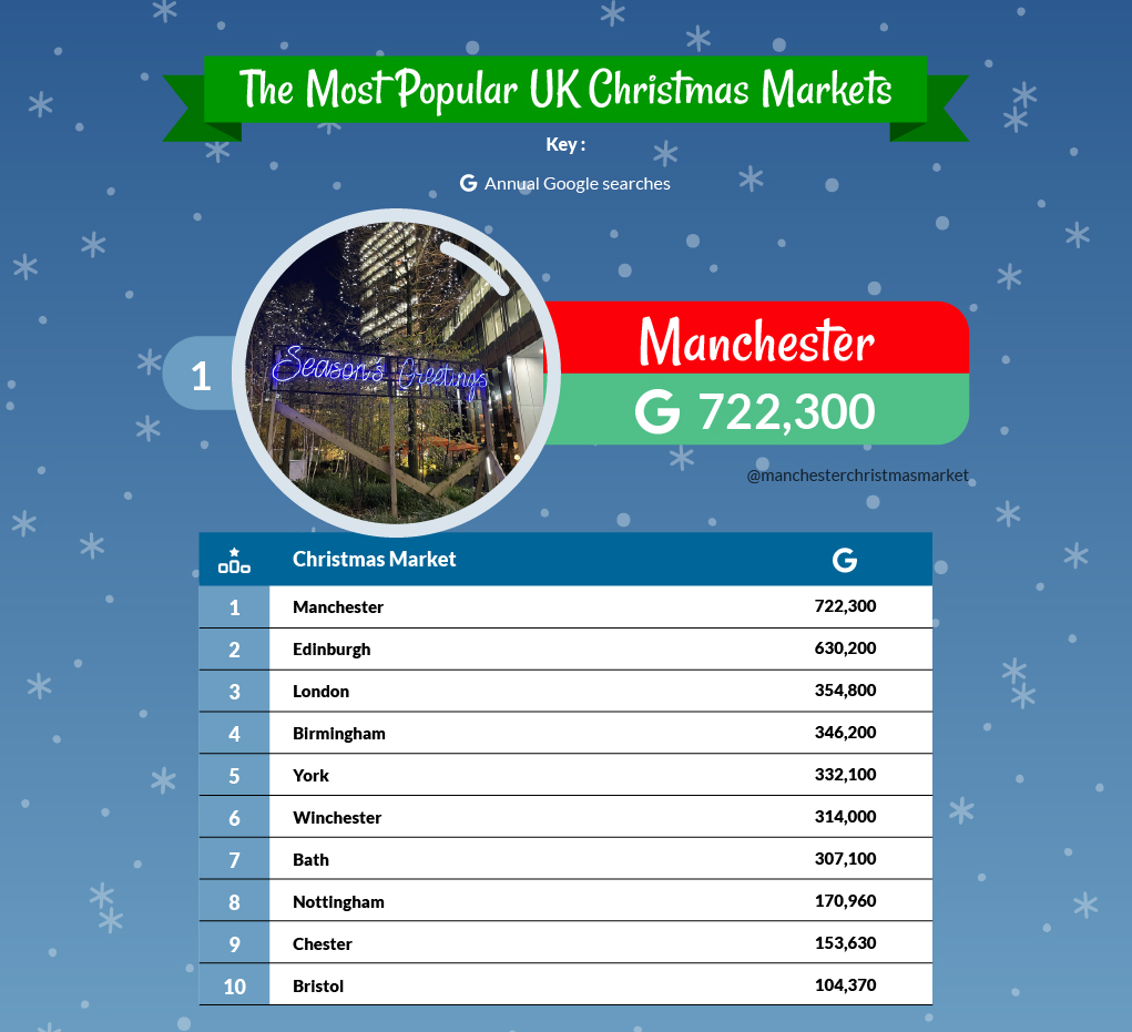 Be sure to do your research before you embark on your travels, and ensure you make the most of your trip. Pre-planners, you’re not alone! According to Google search data, Manchester Christmas markets collected over 722,300 annual searches.