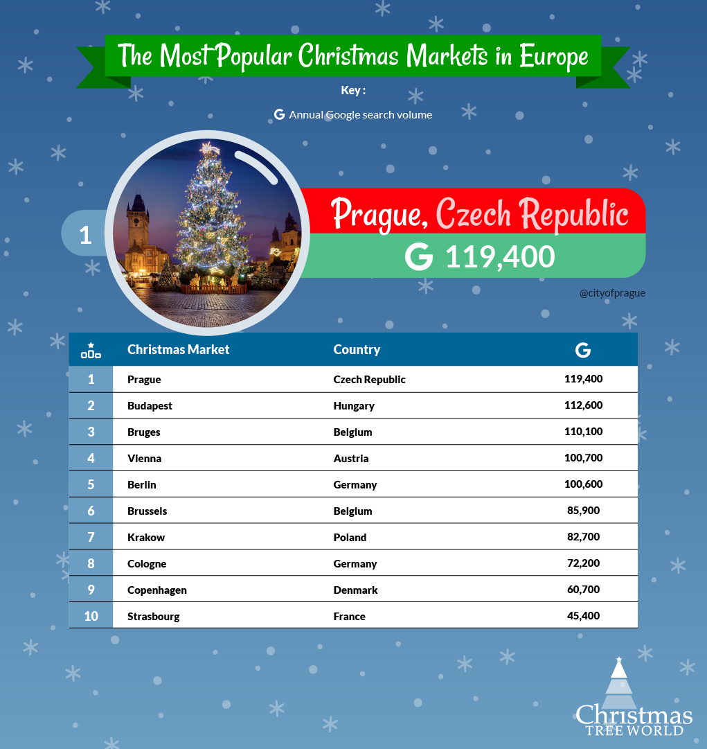 Europe is home to so many magical Christmas markets, but Prague took the top spot with over 119,400 searches, so you may wish to brave the city crowds this festive season.