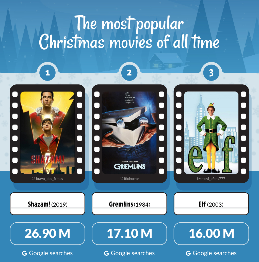 You’d be surprised to find this superhero blockbuster on our list of Christmas movies, but it takes the top spot for popularity with just under 27 million Google searches over the past year. The DC action comedy Shazam is actually set over the festive season and is the perfect Christmas watch as the film focuses on themes of finding family, making it perfect viewing for Christmas time.