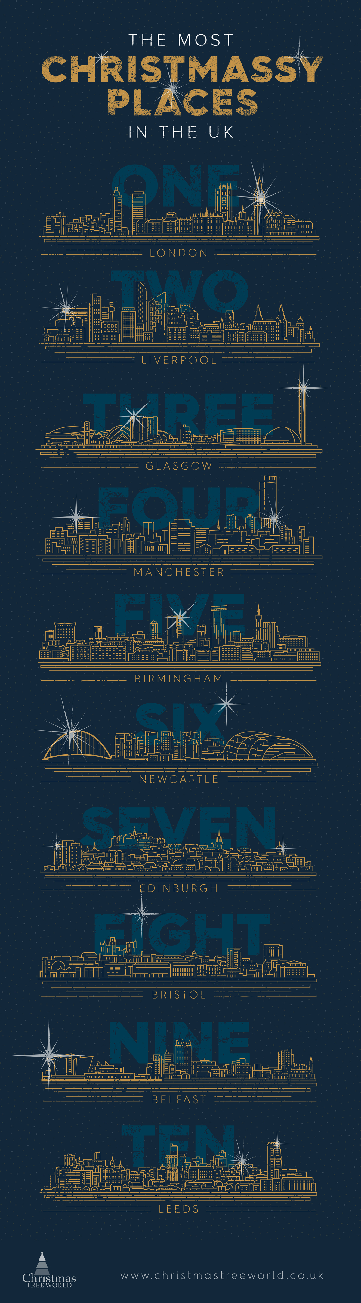 Most ‘Christmassy' cities (based on page views on christmastreeworld.co.uk August 2019):