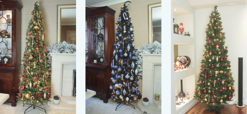 On the opposite side of the spectrum lies slim Christmas trees, which are (you guessed it) thinner than their bushy brethren. The result is a clean silhouette that suits a more contemporary Christmas look; ideal for modern minimalist décor.