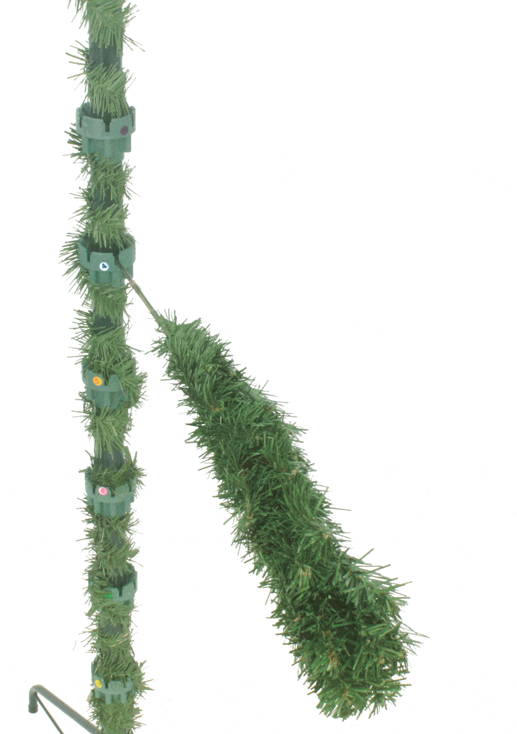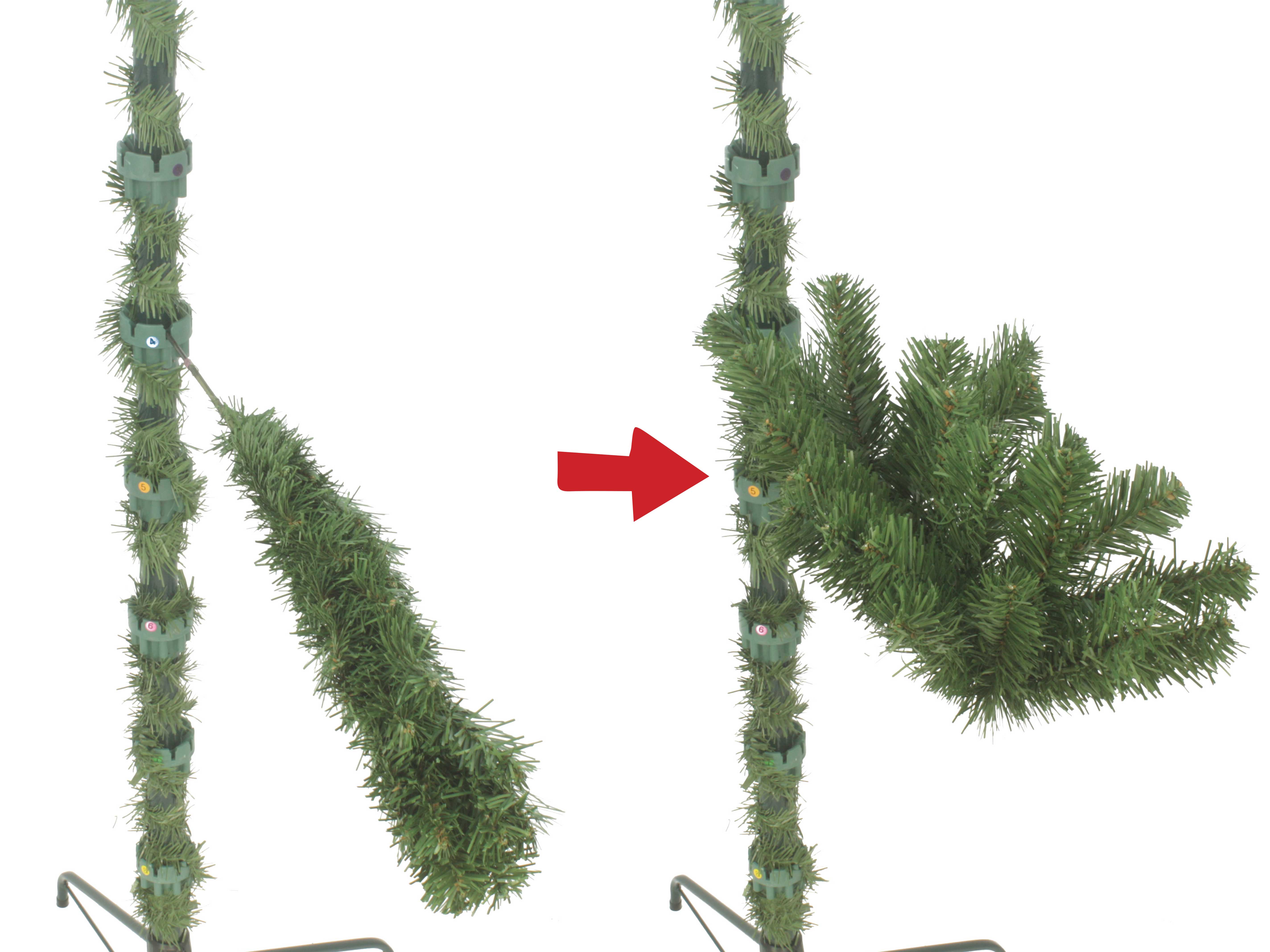 This example highlights the effects of a single fluffed out branch on a center pole. Here, you can see how the branches, while they appear compact on arrival, cover a much larger area than you might expect. Once fluffed, you'll get a tree that has a realistically thick coat of foliage.