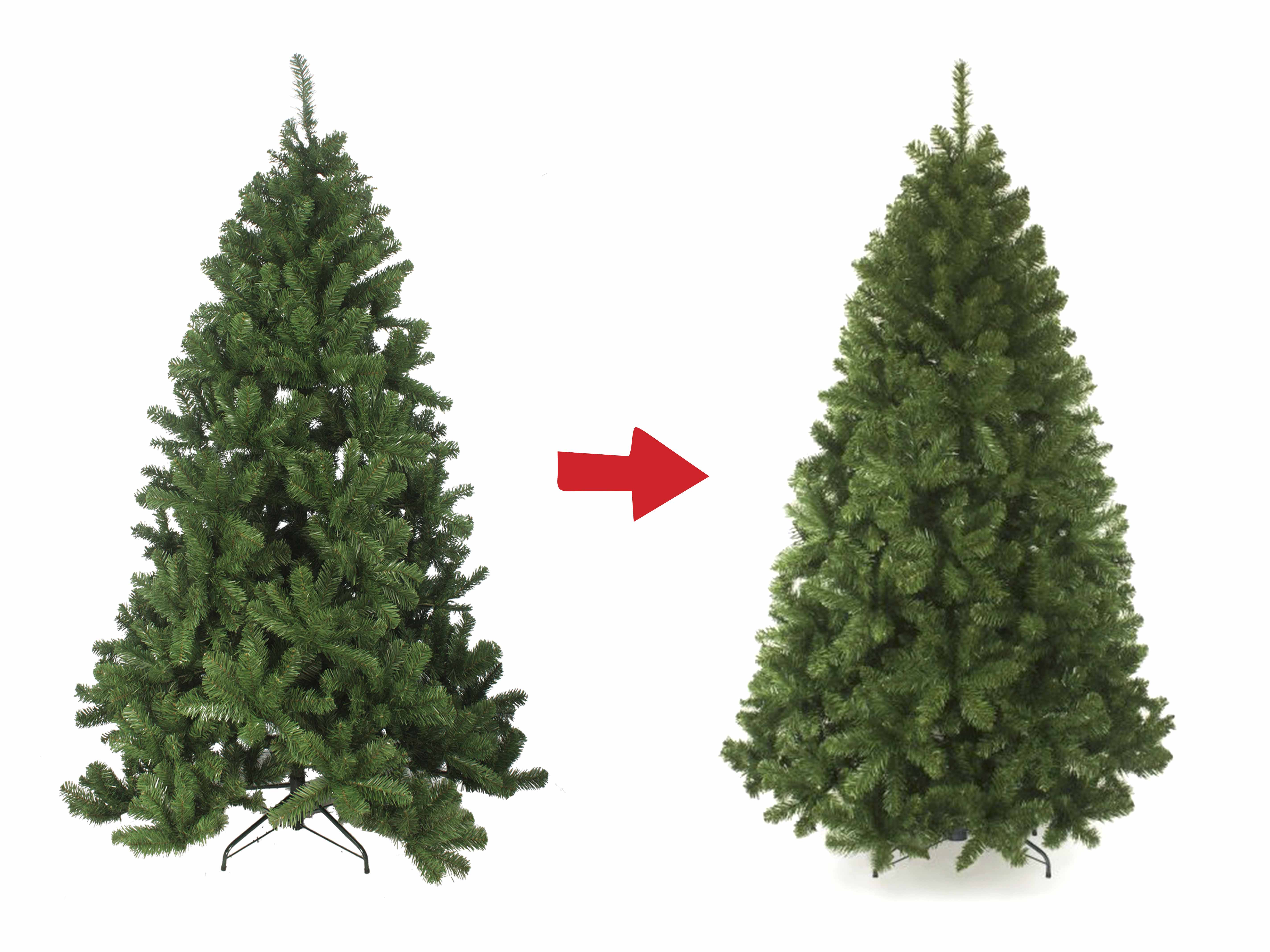 The example to the left shows the effects of tweaking branches on our bestselling 7ft Arbor Vitae Fir Tree. While this is a hook-on branch style tree, this practice can be applied to any style or any sized tree; once you've got the tweaking tricks right, you'll soon find that everything else falls into place.